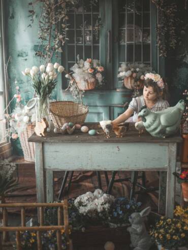 Starannie przygotowana aranżacja – stworzona z dbałością o detale wiosenna scenografia, w której królują pastelowe barwy, kwiaty i wielkanocne akcenty.